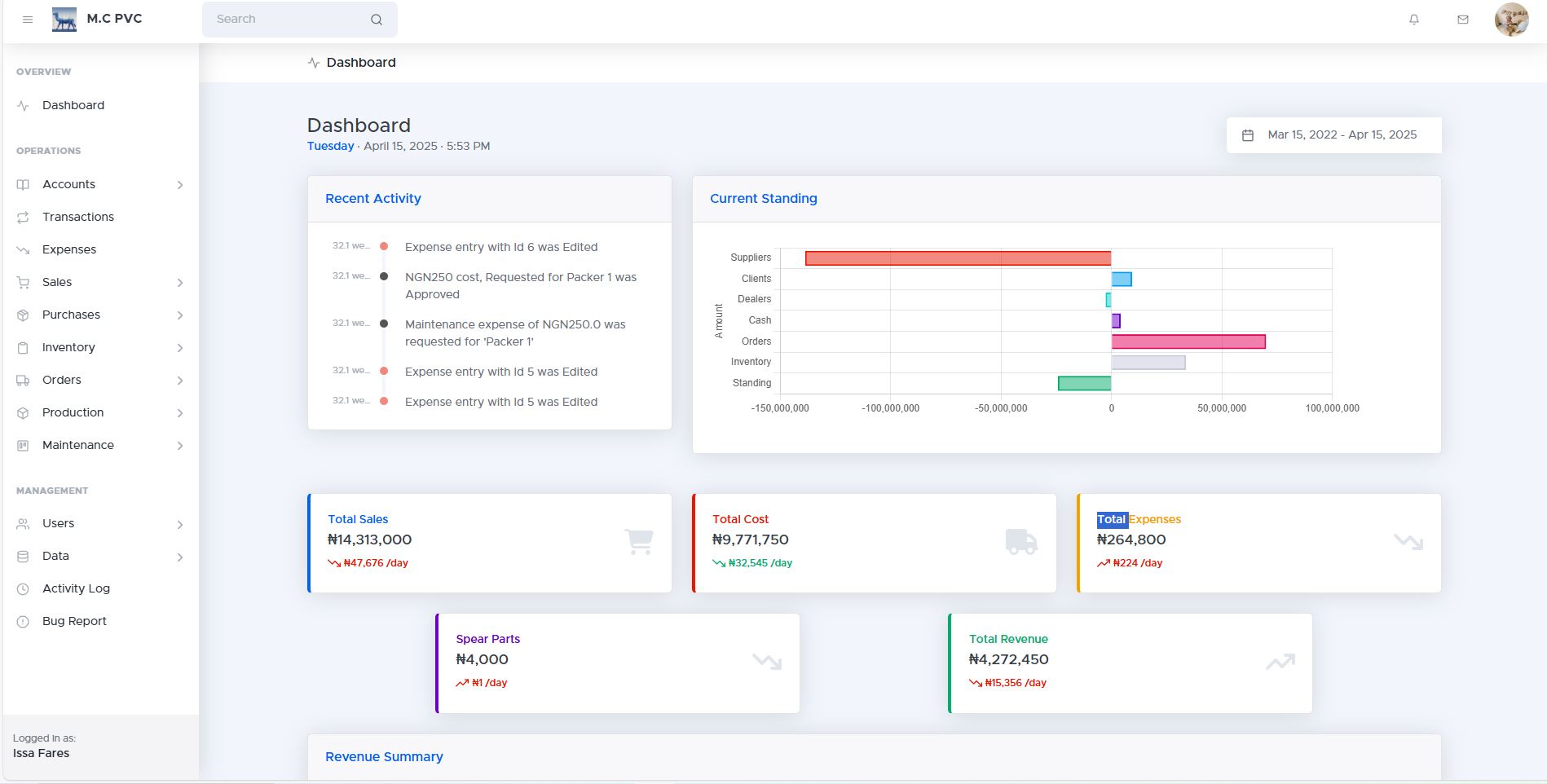 I developed a comprehensive ERC (Enterprise Resource Control) system tailored for the manufacturing industry. This custom-ordered solution integrates a wide range of functionalities essential for efficient management and operations. Key features include: